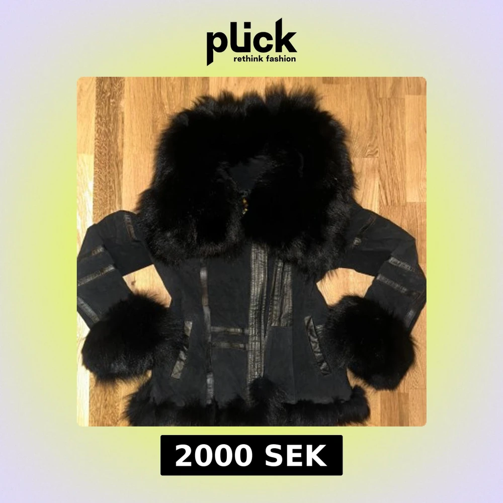 Säljer en svart pälsjacka med stora fluffiga pälskanter vid krage, ärmslut och nederkant. Jackan har snygga detaljer i skinn och mocka, samt dragkedja framtill. Perfekt för dig som vill sticka ut och hålla dig varm under kalla dagar.