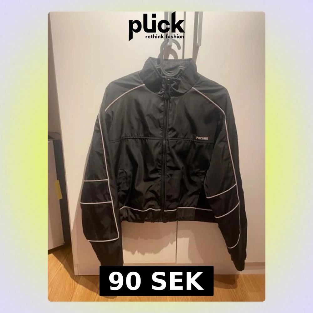 En kortare svart vind/bomber jacka med reflexdetaljer och åtdragbar underdel. Aldrig använd☺️