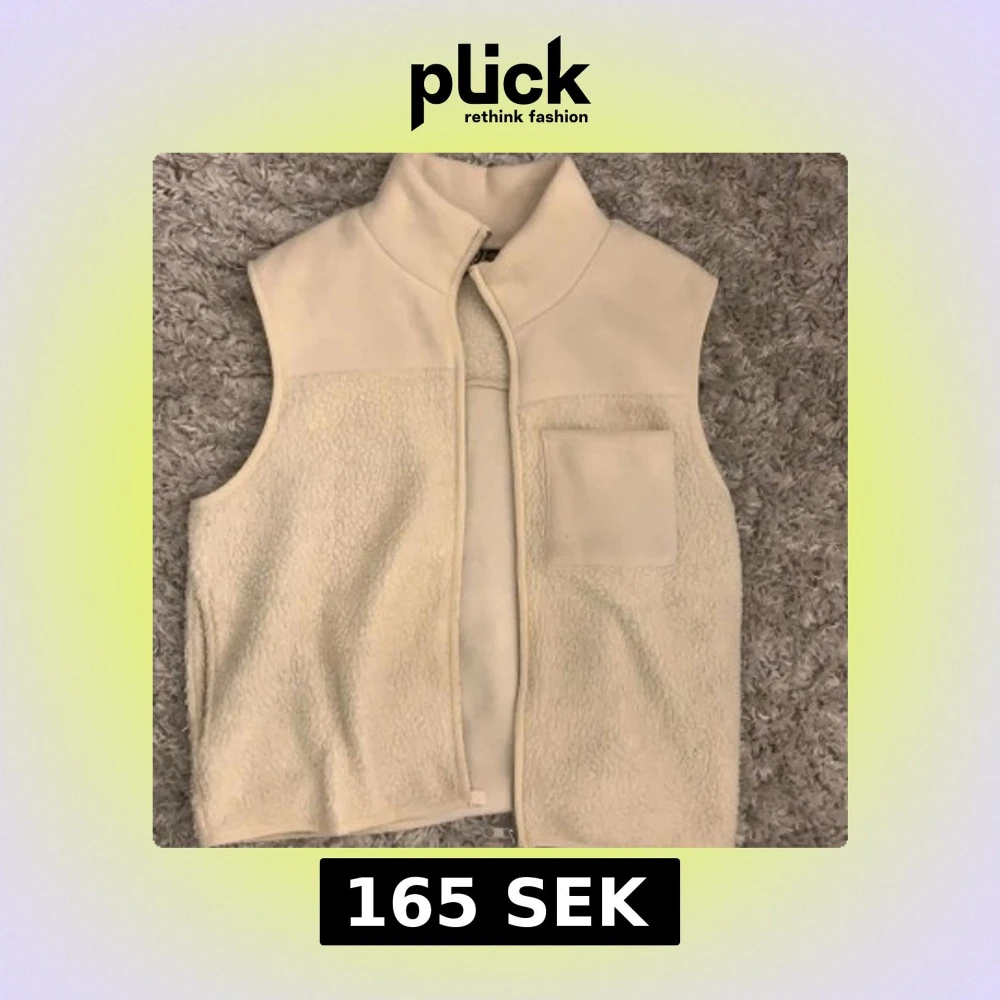 Mysig beige fleeceväst med hög krage och en bröstficka. Perfekt att slänga på sig över en hoodie eller tröja när det är kyligt ute. Enkel och stilren design med en enkel dragkedja framtill