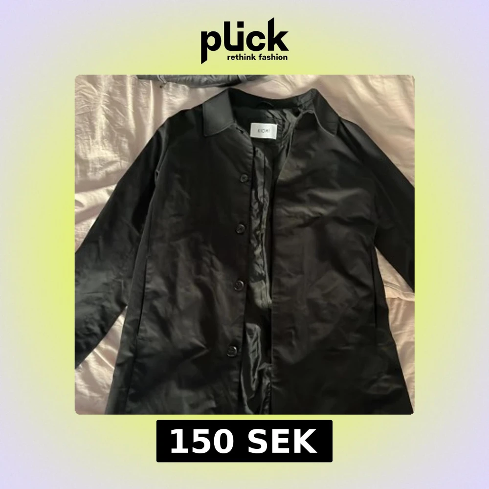 Snygg svart rock från KIOMI med klassisk krage och knappar framtill. Jackan har en stilren och rak passform, perfekt för dig som gillar minimalistisk stil. Materialet är slätt och har en lätt glansig finish.