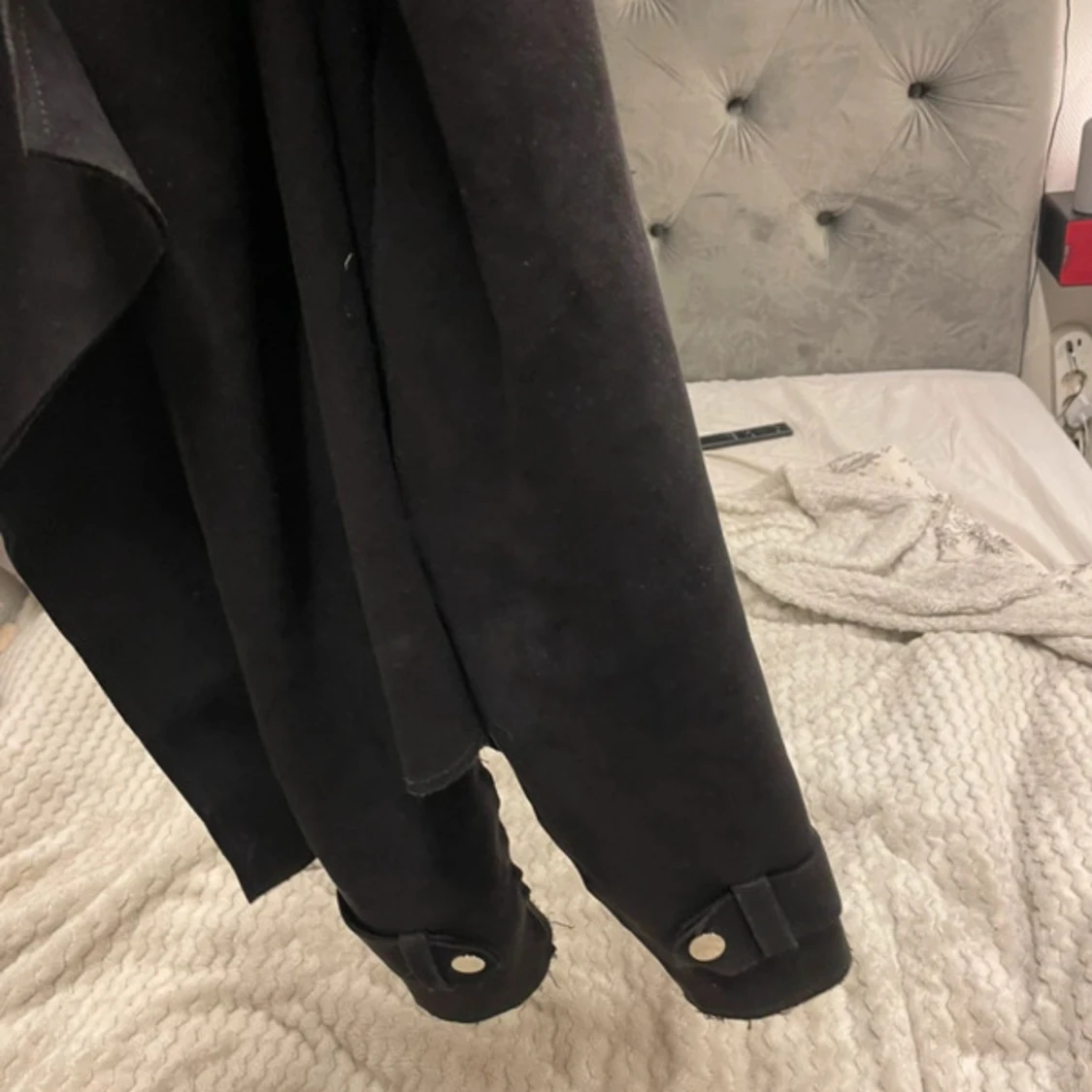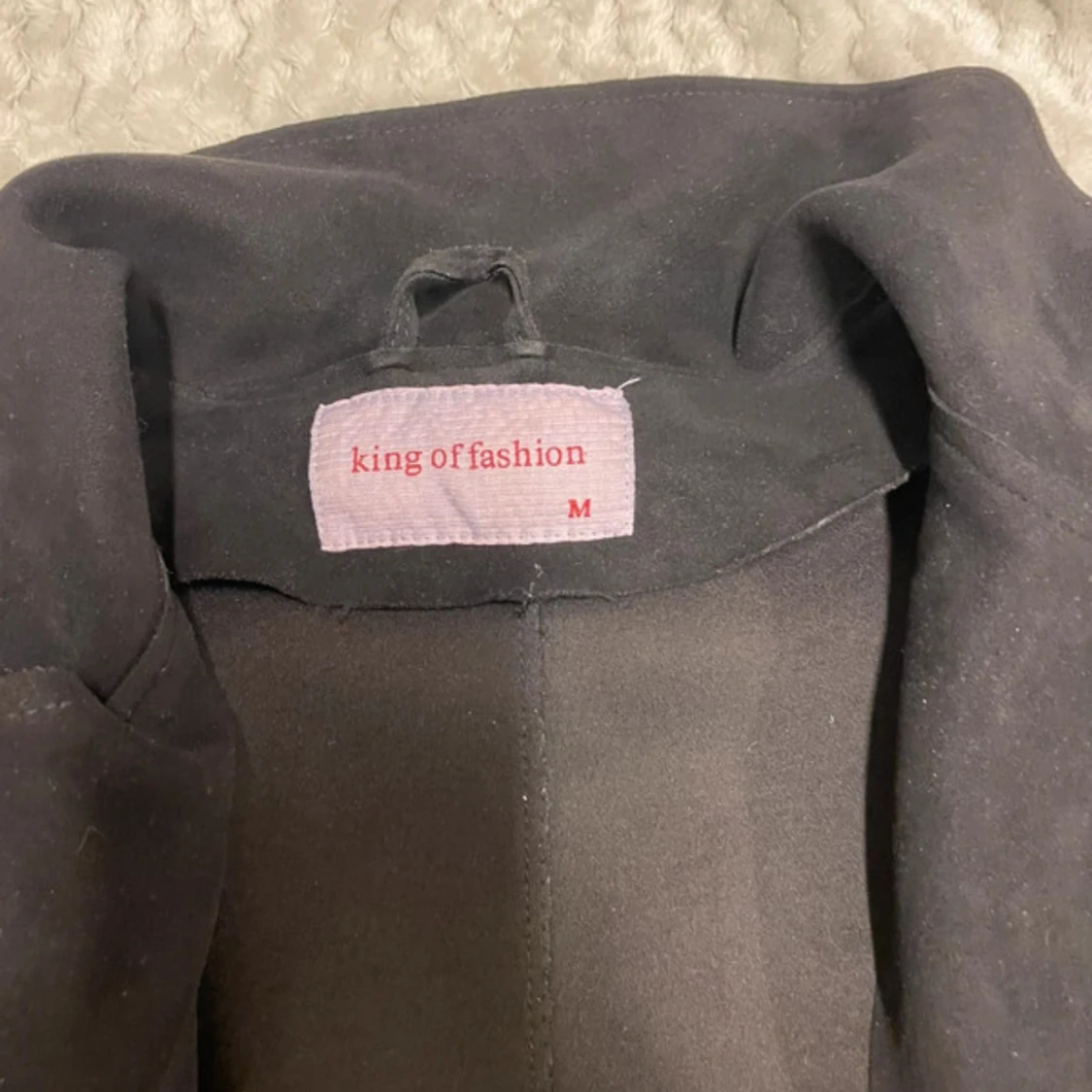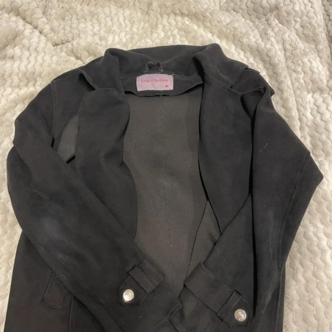 Svart rock i mocka-look från King of Fashion, storlek M. Snygg krage och coola detaljer med knappar vid ärmsluten. Jackan har en stilren och klassisk form som ger en clean vibe. Perfekt för dig som gillar minimalistisk stil och vill ha något som sticker ut.