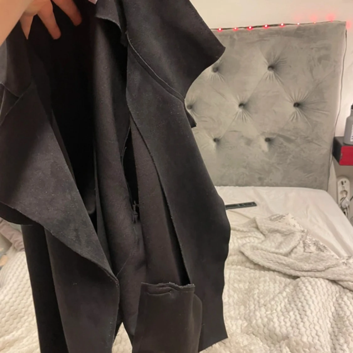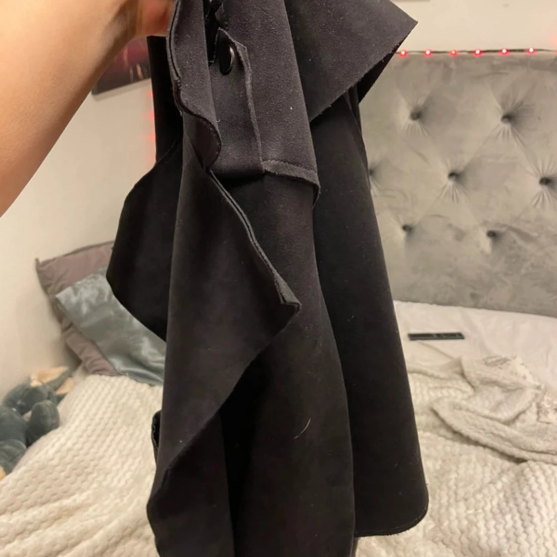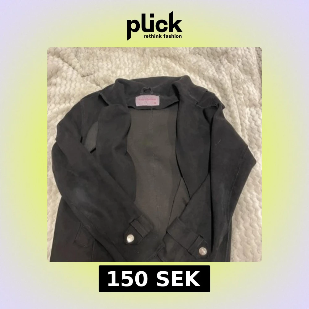 Svart rock i mocka-look från King of Fashion, storlek M. Snygg krage och coola detaljer med knappar vid ärmsluten. Jackan har en stilren och klassisk form som ger en clean vibe. Perfekt för dig som gillar minimalistisk stil och vill ha något som sticker ut.