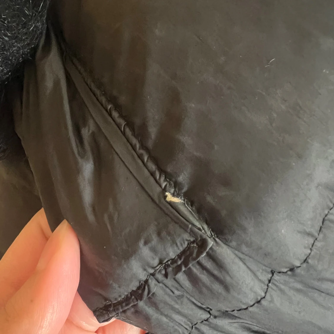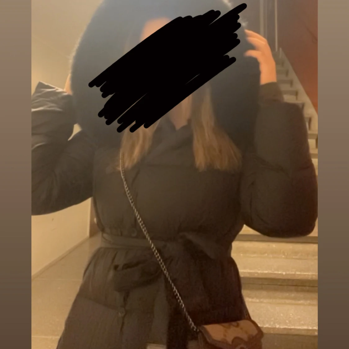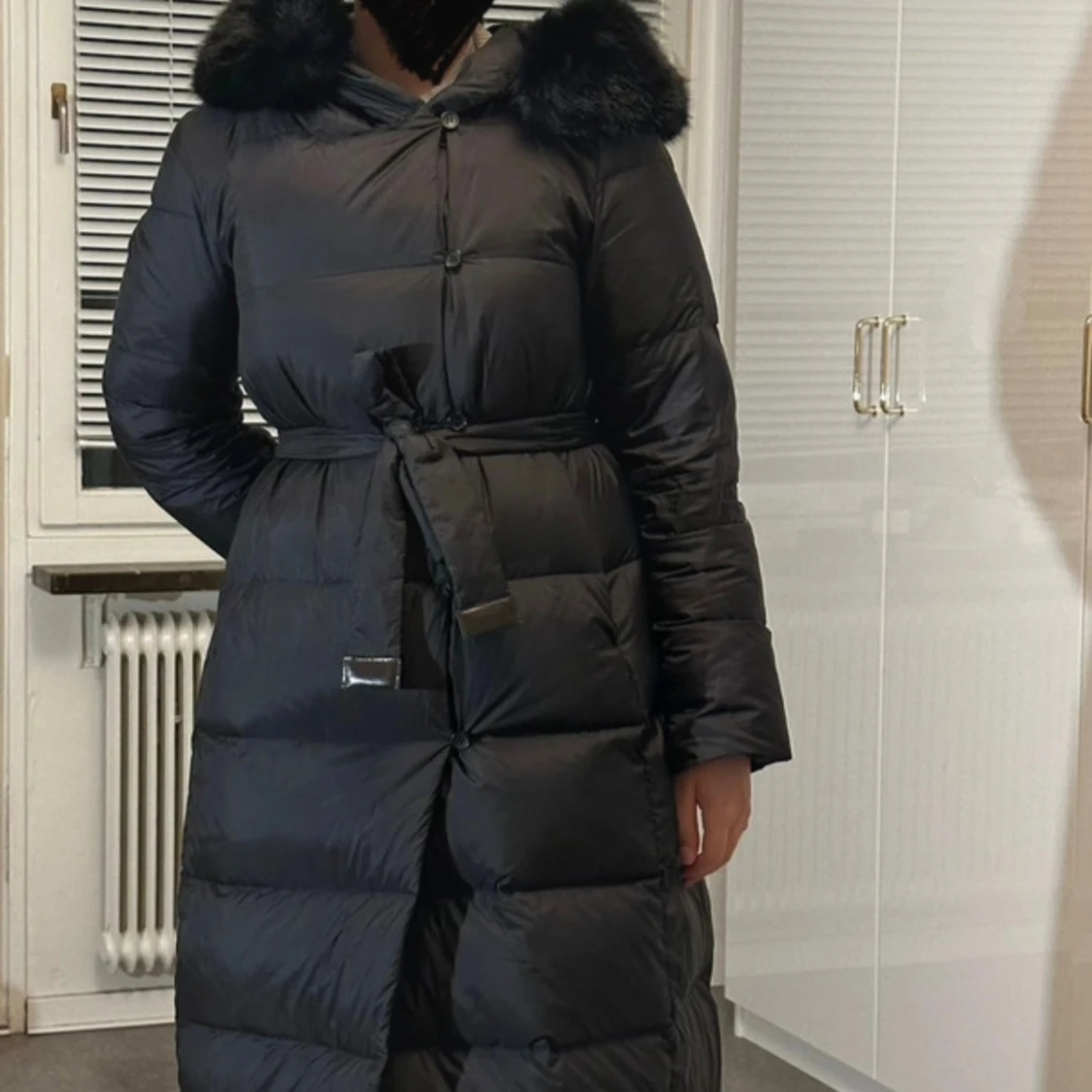 Använd endast några gånger under en vinter. Storlek M. Säljs endast för att jag gått ner i vikt och köpt en mindre storlek i en annan färg. Den levererades tyvärr med ett litet hål i ena fickan (så undvik småsaker där eller sy en enkel söm om du vill), men det har aldrig stört mig i användning. Finns även i liknande modeller hos både Fur Stockholm och Feminina Som på många liknande ( även helt nya ) jackor kan det sticka ut lite av det vita innerma-terialet pa vissa ställen. Fuskpäls✨