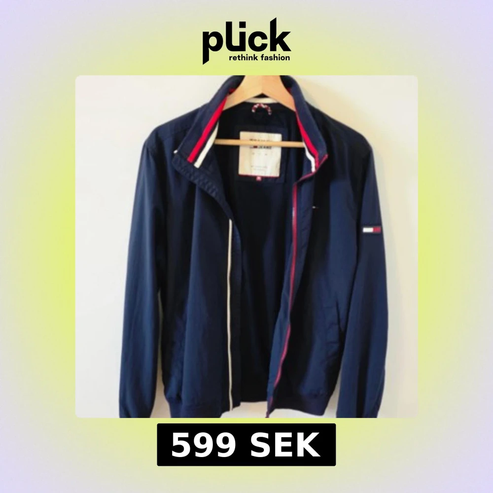 Snygg marinblå vindjacka från Tommy Jeans med klassiska röda, vita och blå detaljer på krage och ärmslut. Jackan har dragkedja, ribbade muddar och diskret logga på ärmen. Perfekt för dig som gillar sportig och stilren look.