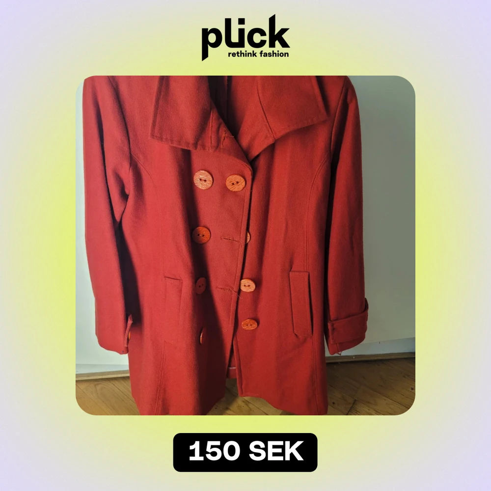 Säljer en snygg röd kappa i bra skick. Den har stora dekorativa knappar och en klassisk krage. Perfekt för höst och vår! Passar storlek 44/46. En tidlös stil som funkar till många tillfällen. 🧥