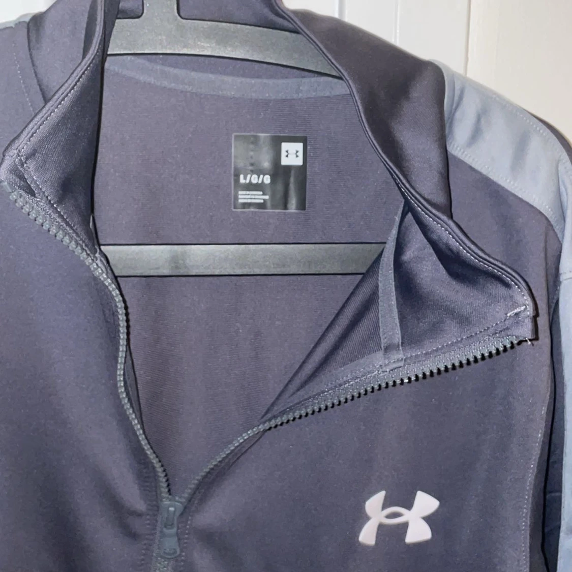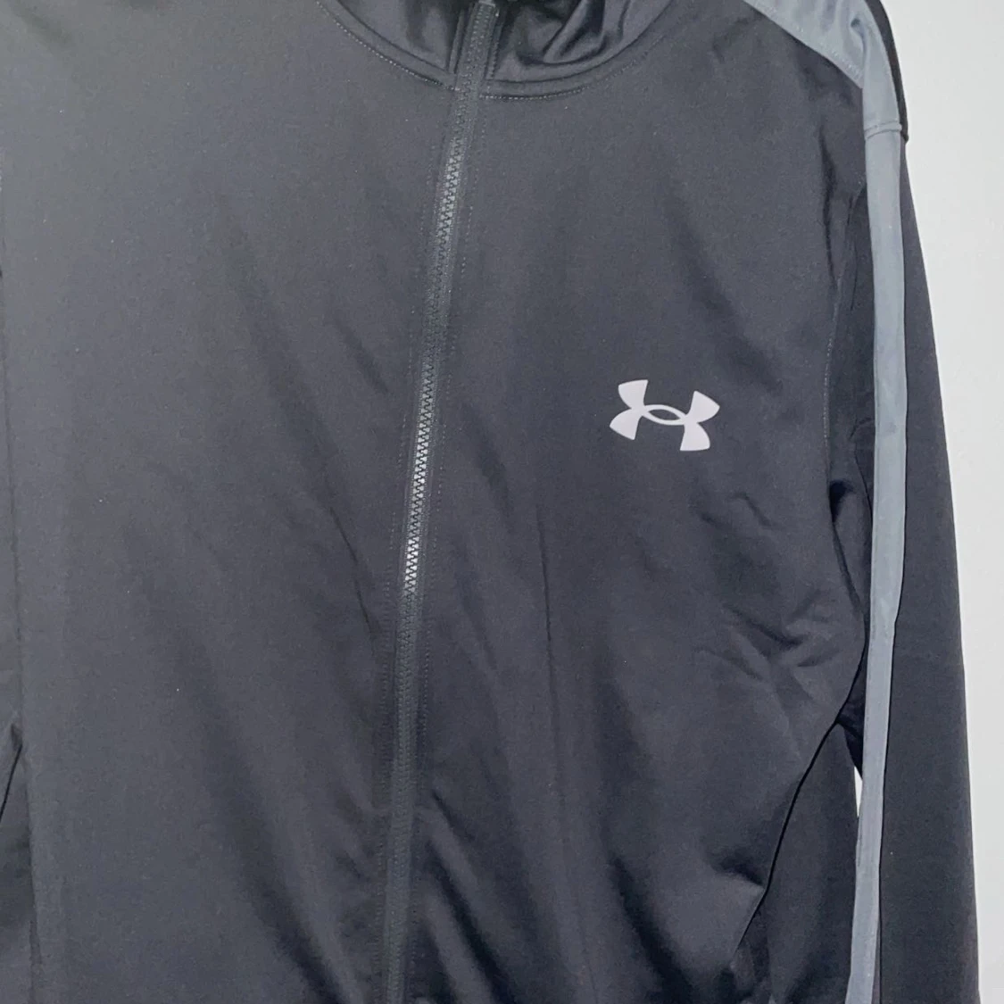 Grå kofta från Under Armour med gråa detaljer längs ärmarna och dragkedja framtill. Jackan har en sportig look med logga på bröstet och är tillverkad i ett lätt syntetmaterial. Perfekt för dig som gillar att hålla stilen på gymmet eller ute.