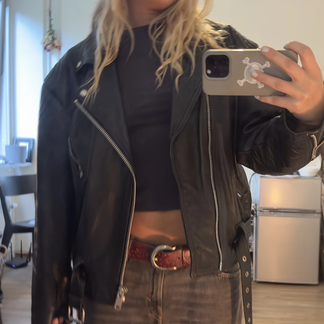 Skinnjacka äkta läder