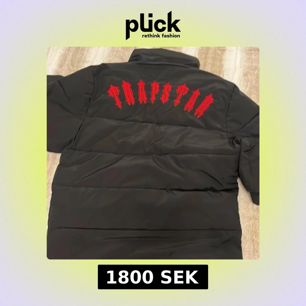 Svart pufferjacka från Trapstar med fet röd logga på ryggen och rund patch på bröstet. Jackan har hög krage, dragkedja med unik T-detalj och två fickor framtill. Perfekt för kalla dagar och riktigt street i stilen.