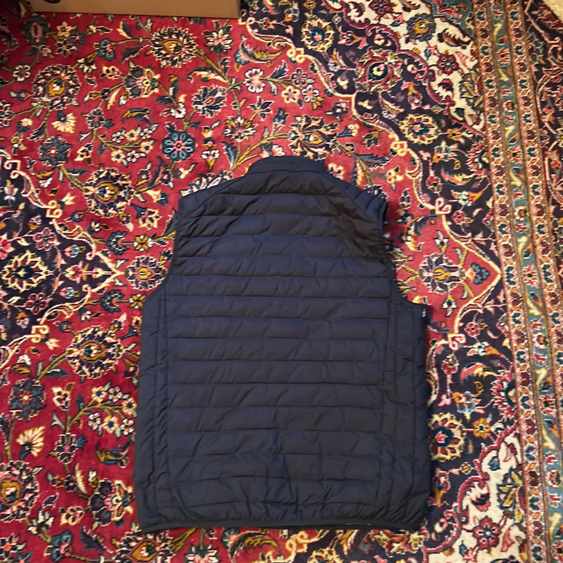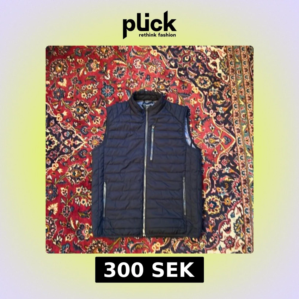 Stilren svart dunväst från Casa Moda i storlek medium. Västen har tre dragkedjeförsedda fickor och hög krage. Perfekt att slänga över en hoodie eller tröja när det är kyligt ute. Har ett litet håll vid vänstra armhålan. Ett litet längst ned på dragkedjan men är svårt att märka.