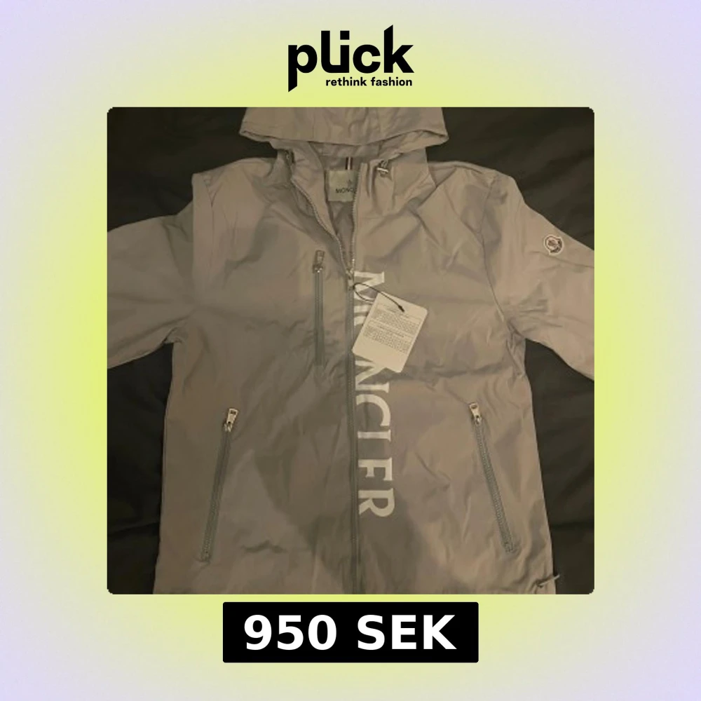 Snygg grå vindjacka med huva och dragkedja framtill. Jackan har tre fickor med dragkedja, logga på ärmen och stort tryck på bröstet. Perfekt för dig som vill ha en stilren och sportig look