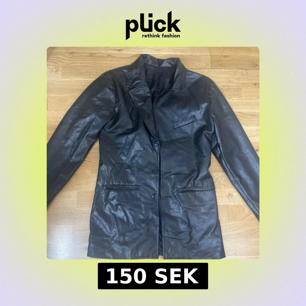 Snygg svart kavaj i skinn med klassisk krage och tre knappar framtill. Jackan har två fickor nertill och en bröstficka, perfekt för en stilren look. Långärmad modell med slät finish och rak passform.