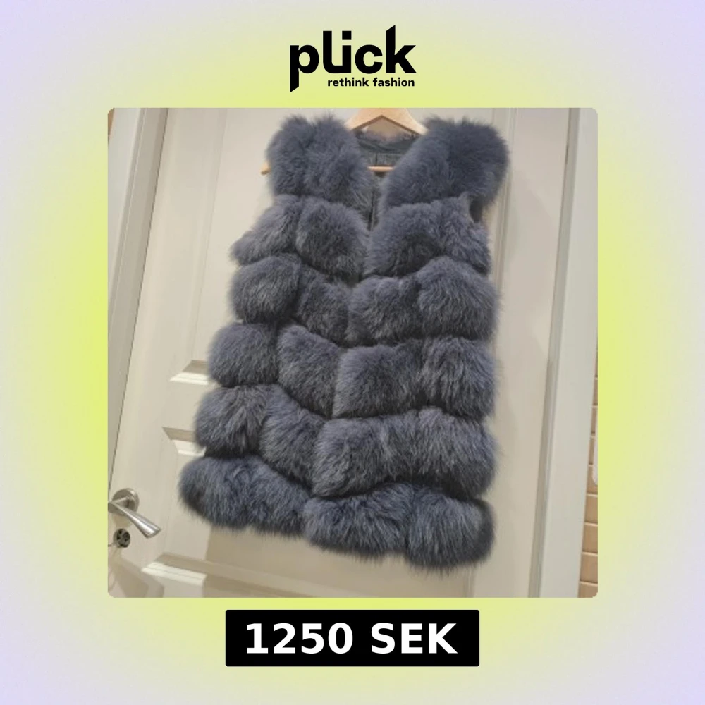 Säljer en riktigt fluffig och lyxig pälsväst i mörkgrå ton. Västen har en voluminös och mjuk look med breda horisontella sektioner av päls. Perfekt för dig som vill sticka ut och hålla dig varm med stil. Ingen synlig knäppning eller dragkedja framtill.