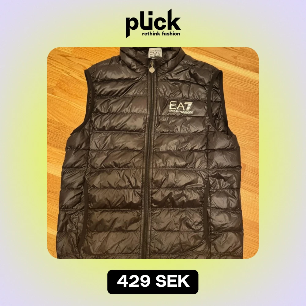 Säljer en snygg svart dunväst från EA7 Emporio Armani. Västen har en dragkedja framtill och är quiltad för extra värme. Perfekt för höst och vår, och passar både till vardags och fest. Den är i mycket bra skick och har en stilren design.
