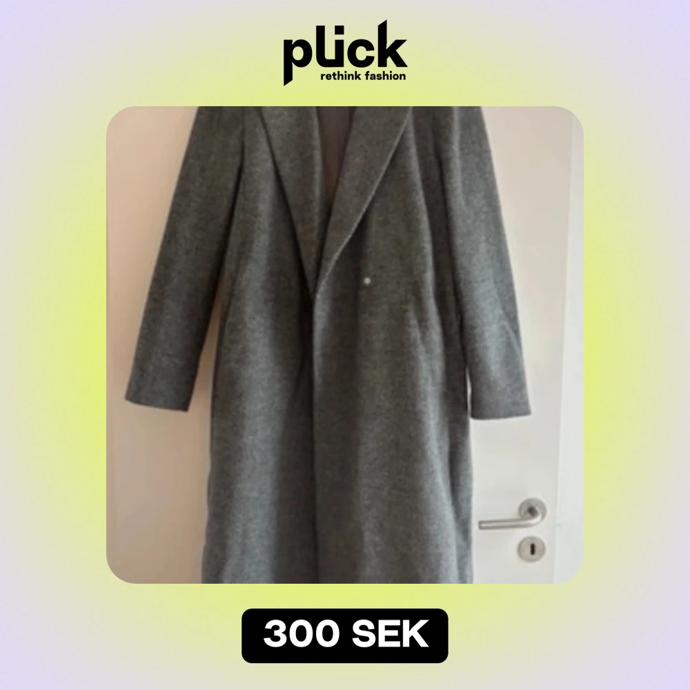 Säljer en stilren grå kappa i fiskbensmönster. Kappan är fodrad och i ett mycket bra skick. Den har en klassisk design med långa ärmar och ett bälte i midjan för en snygg passform. Perfekt för höst och vinter! 🧥