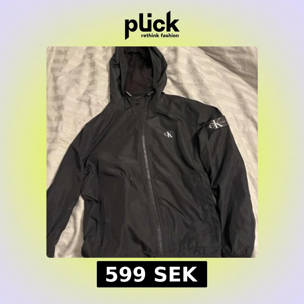 Snygg svart vindjacka från Calvin Klein Jeans med huva och dragkedja. Jackan har logotypdetaljer på bröstet och ärmen. Perfekt för blåsiga dagar och ger en stilren look.