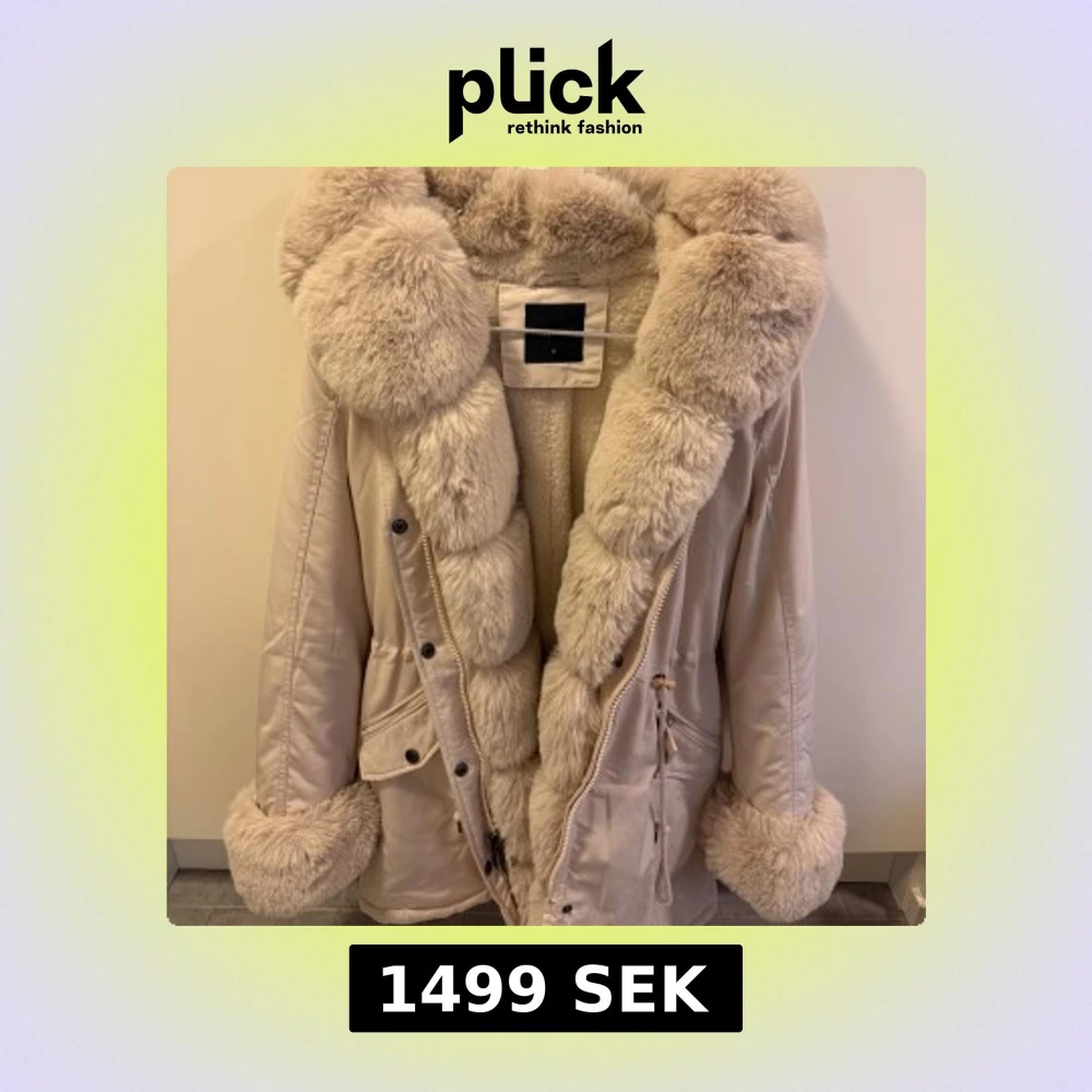 Snygg beige parkajacka med fluffiga pälsdetaljer på krage, ärmslut och insida. Jackan har knappar och dragkedja framtill samt praktiska fickor. Perfekt för kyliga dagar när du vill hålla dig varm och stilren.