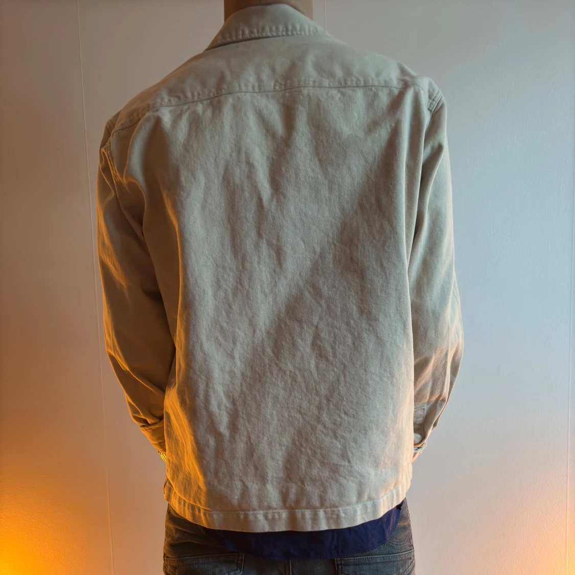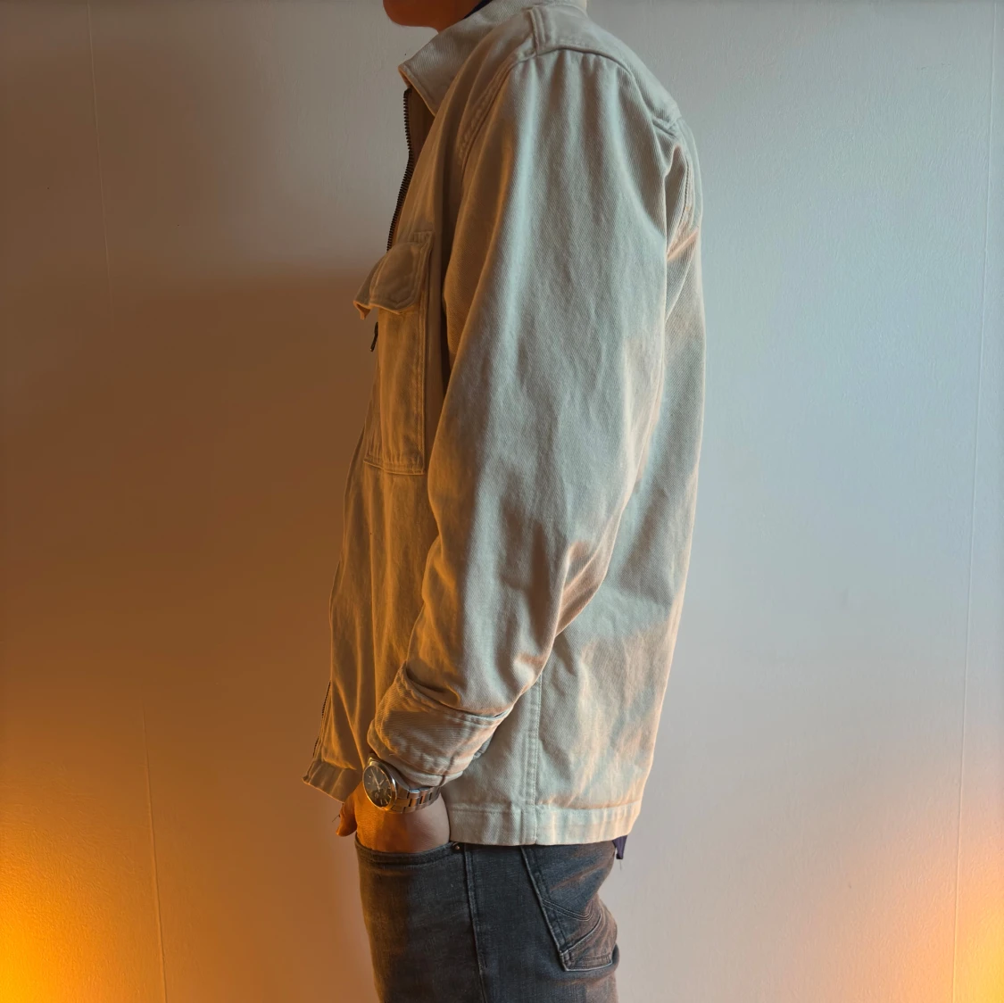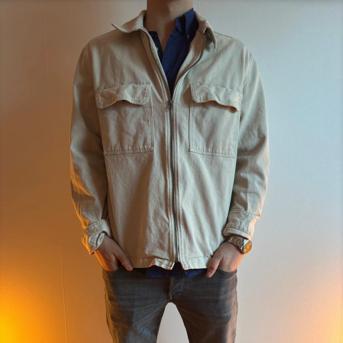 Säljer en stilren beige overshirt med dragkedja och två bröstfickor. Perfekt för lager-på-lager och har en avslappnad passform. Passar bra till både jeans och chinos.