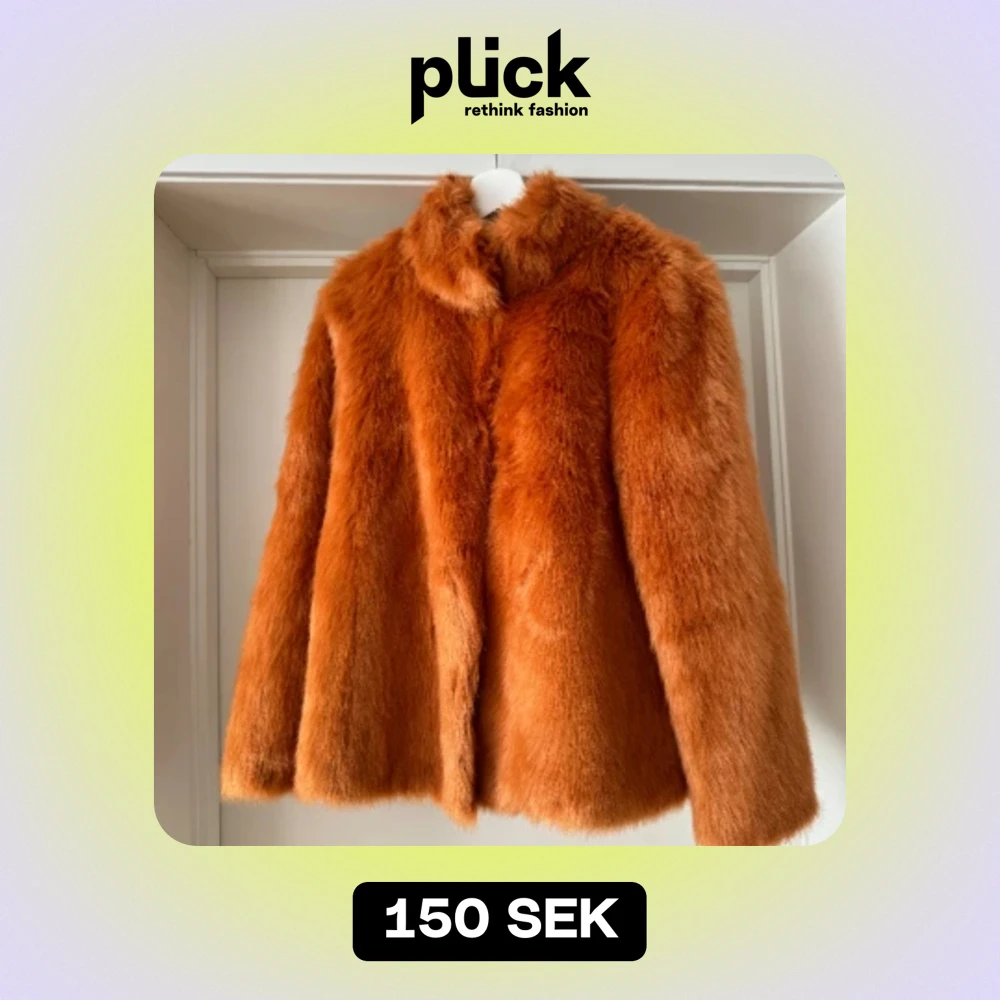 Orange pälsjacka, inpincip oanvänd. Storlek M