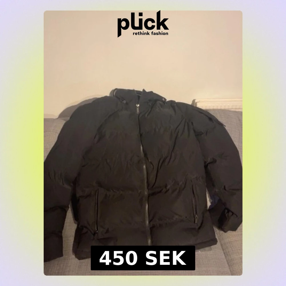 Säljer en svart pufferjacka med huva och dragkedja framtill. Jackan har två stora fickor med dragkedja och en klassisk quiltad look. Perfekt för kalla dagar och riktigt skön passform. Passar dig som gillar en enkel och stilren vinterjacka.