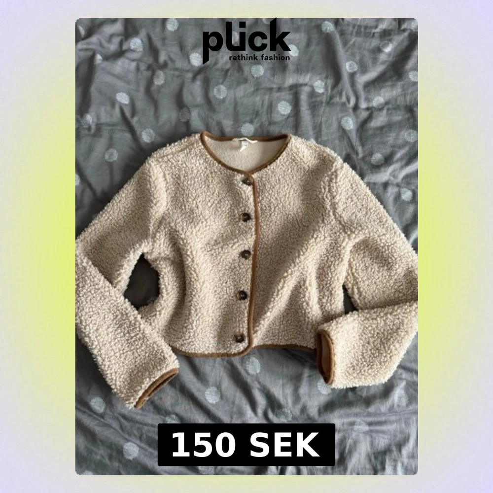 Mysig beige teddyjacka med bruna detaljer och knappar framtill. Jackan är croppad och har långärmad design. Perfekt för dig som vill ha en varm och trendig look under höst och vinter.