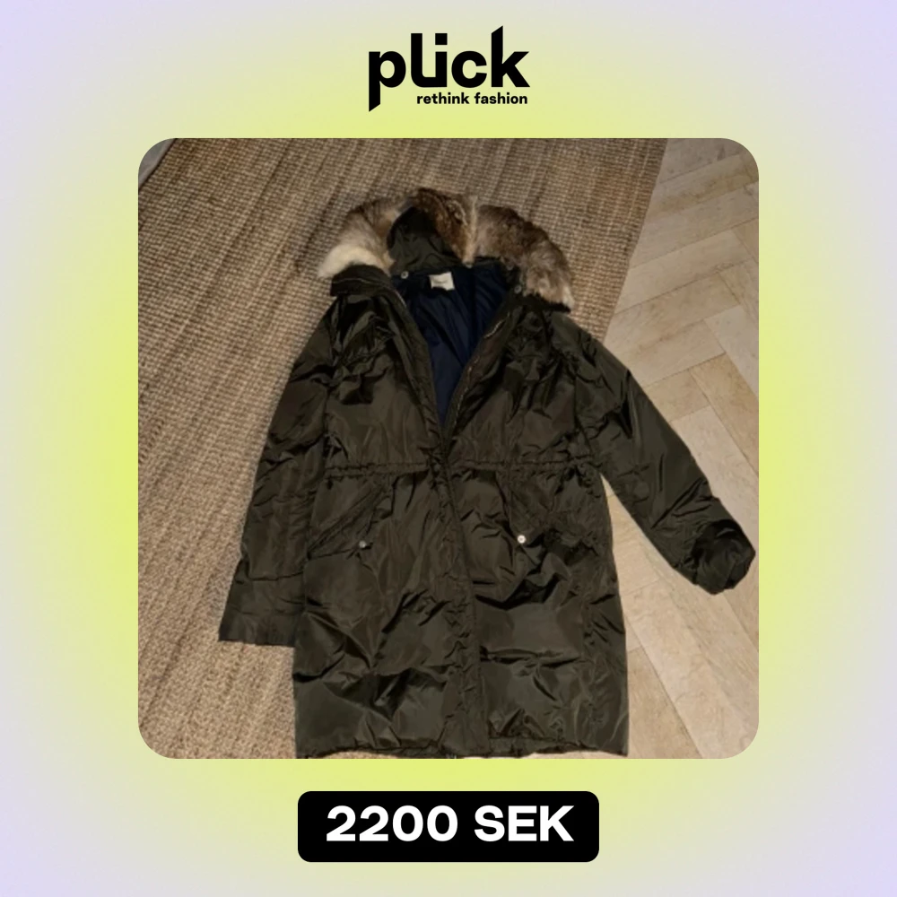 Fin lampeliusjacka i grönt med avtagbar päls. Jag säljer den pågrund av att jag har för många jackor och behöver bli av med några. Den är i superfint skick, de ända felet är att två snören till luvan har lossnat. Nypris 8-9 tusen