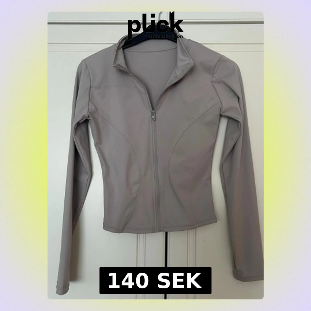 Snygg ljusgrå vindjacka med figurnära passform och hel dragkedja framtill. Jackan har lång ärm och hög krage, perfekt för en sportig och clean look. Materialet känns mjukt och stretchigt, vilket gör den bekväm att bära.💞💞🩷pris kan diskuteras
