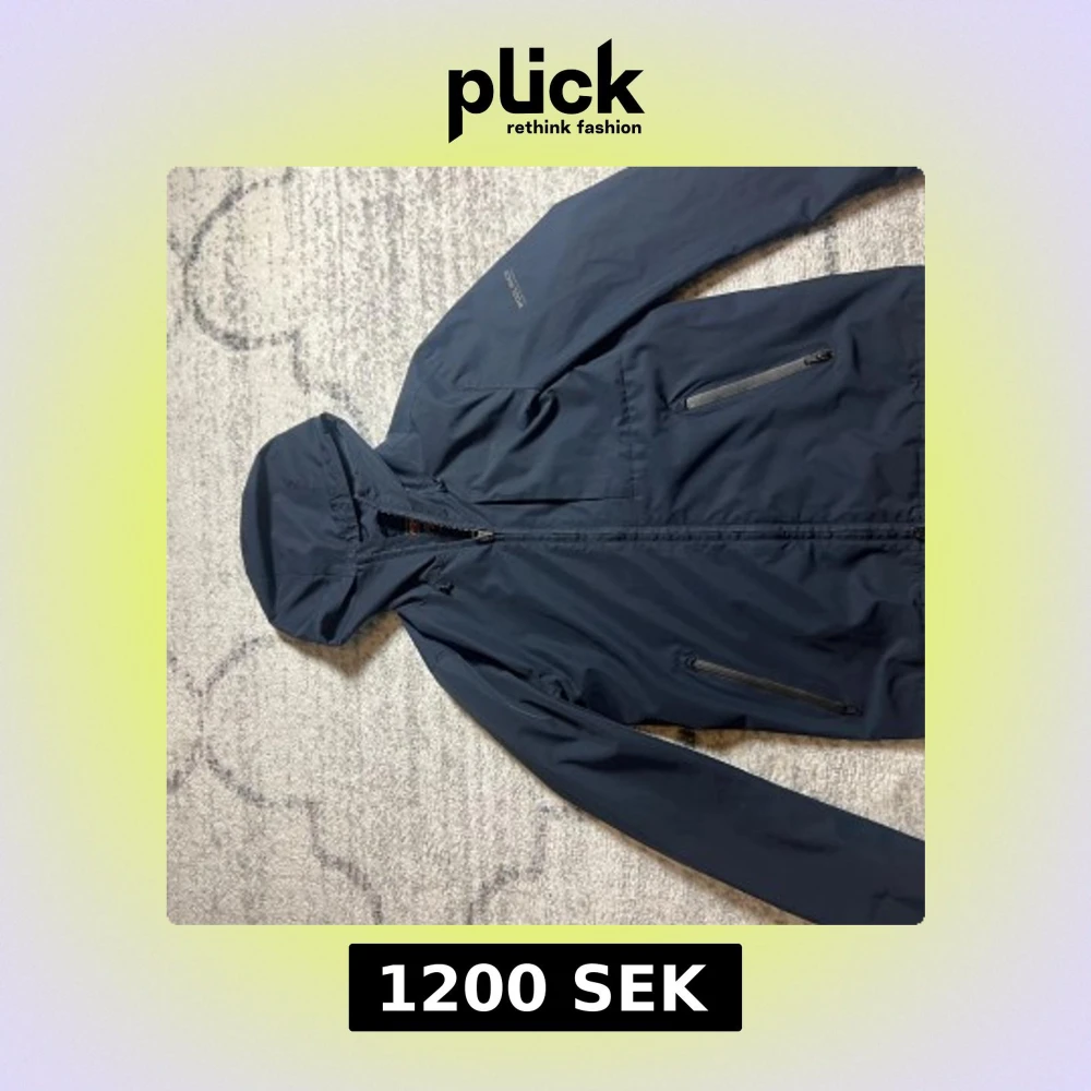 Säljer en stilren mörkblå vindjacka från Woolrich. Jackan har en praktisk huva och dragkedja framtill. Två fickor med dragkedja på sidorna ger extra funktionalitet. Perfekt för blåsiga dagar. Ny pris 3500