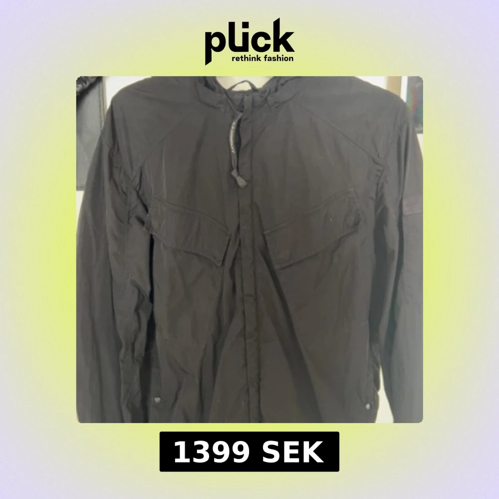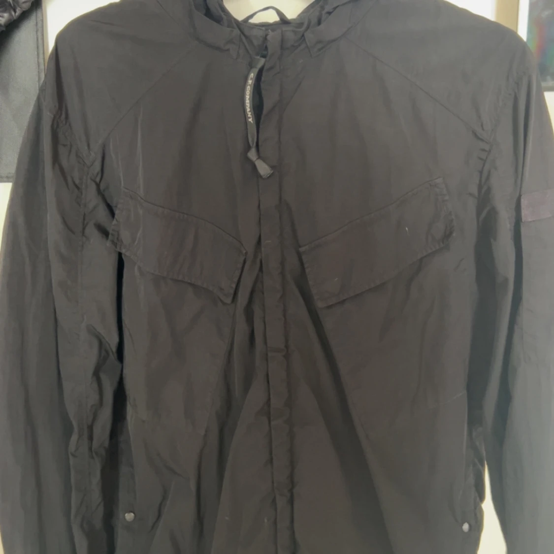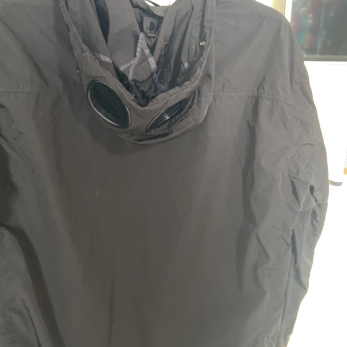 Svart vindjacka från C.P. Company med ikoniska glasögon i huvan. Jackan har två stora bröstfickor med lock, dragkedja framtill och justerbar huva. Perfekt för dig som gillar streetwear och vill sticka ut med en unik detalj.