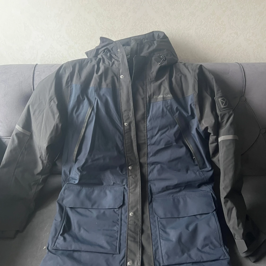 Säljer en svart och blå jacka från Didriksons med Stormsystem för 100% vattentät, vindtät och …. . Perfekt för kalla och blöta dagar.( Priset kan diskuteras).