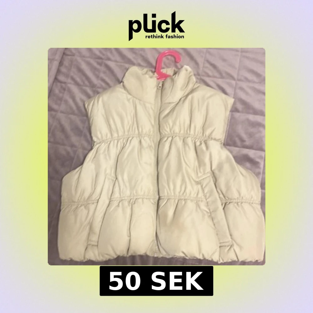 Säljer en beige dunväst från H&M Divided i storlek M. Västen har hög krage, dragkedja framtill och två sidofickor. Den quiltade designen ger en puffig look och passar perfekt för lager-på-lager under kyliga dagar.