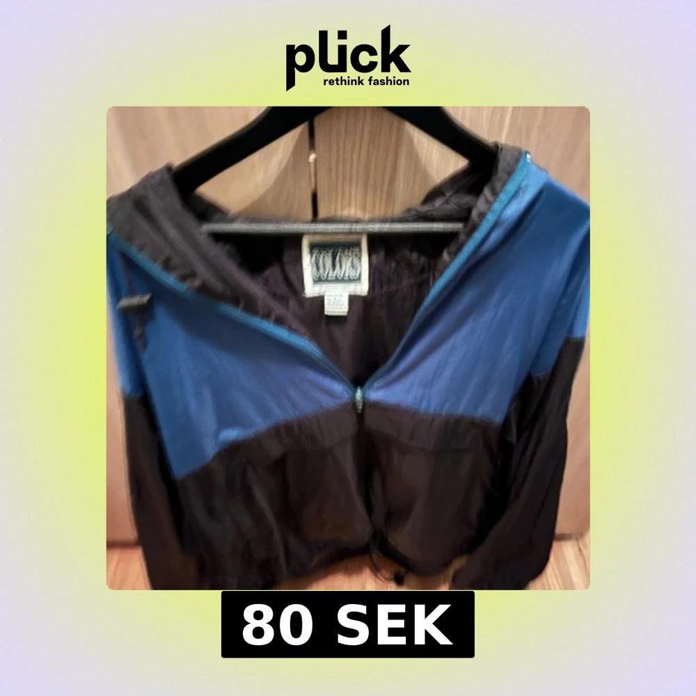 Snygg vindjacka från Colors i blått och svart med dragkedja framtill och elastiska muddar. Jackan har en luva och är tillverkad i lätt polyester, perfekt för blåsiga dagar. Klassisk loose passform och sportig look. Fläck på ena ärmen