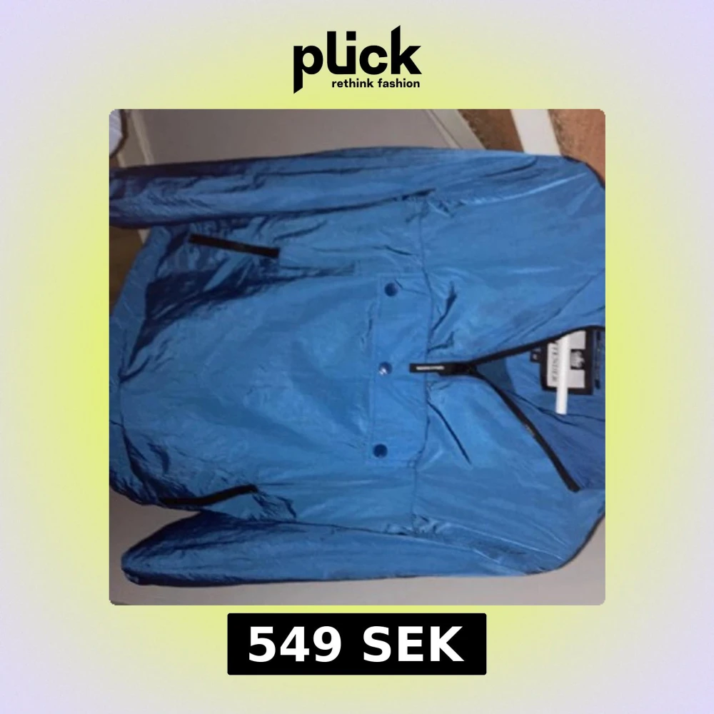 Säljer en blå vindjacka från Weekend Offender med huva och dragkedja. Jackan har en stor ficka framtill med knappar och meshfoder på insidan. Perfekt för dig som vill ha en lätt och stilren jacka.