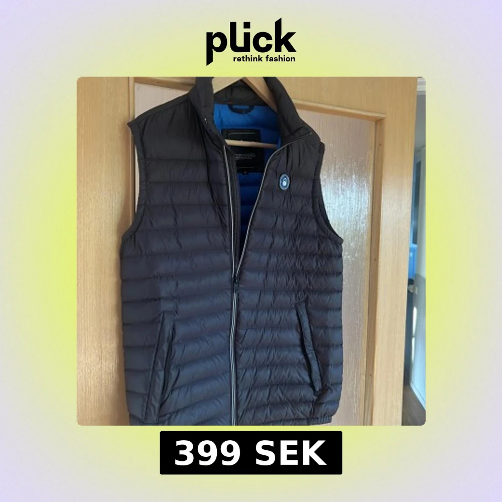Snygg svart dunväst från sail raicing med quiltad design och dragkedja framtill. Västen har två fickor med dragkedja och en rund logotyp på bröstet. Perfekt för lager-på-lager under kyliga dagar.