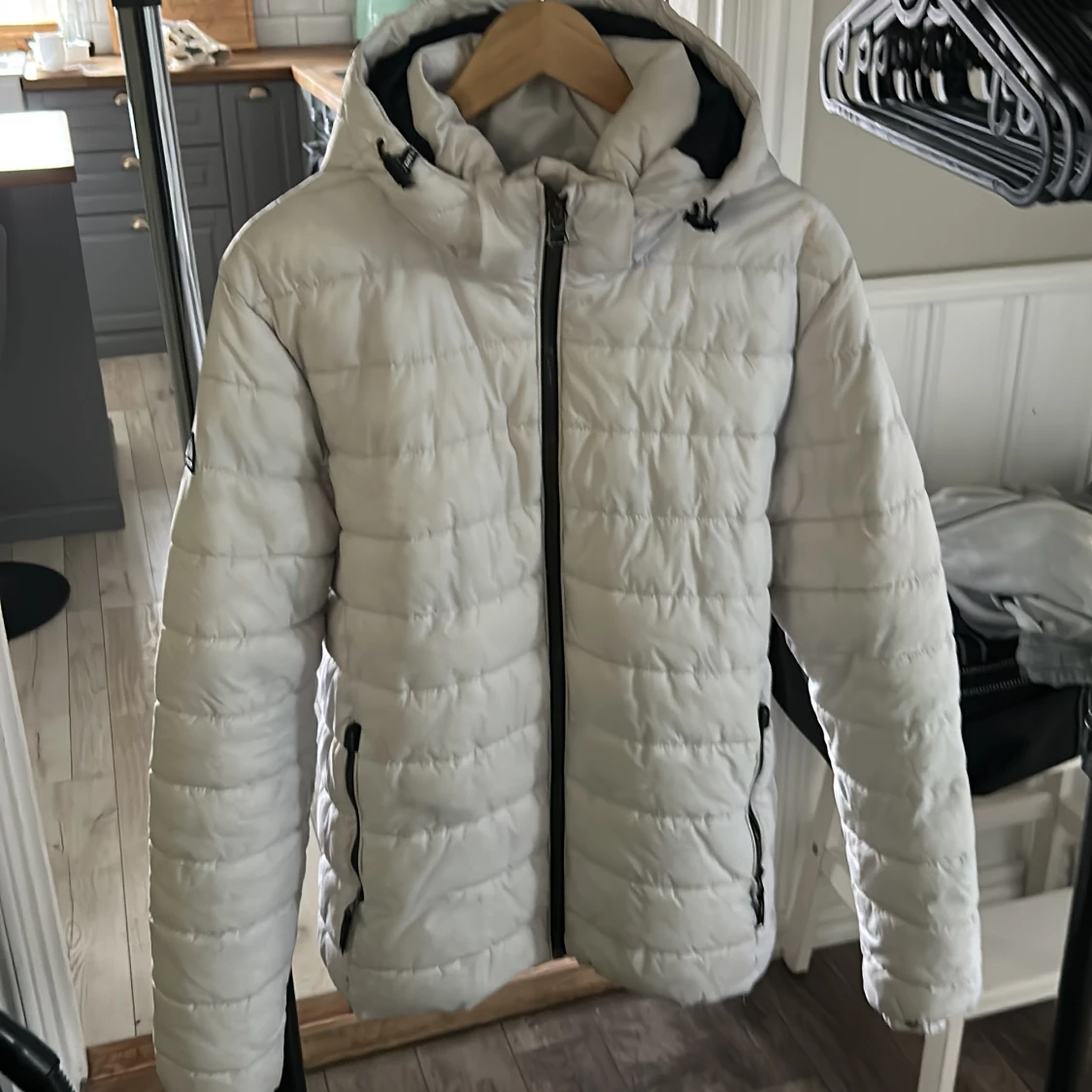 En bra jacka till vintern som inte längre kommer till andvändning. Finns ett litet fel som man kan se på bild ett ett knäppe till armén har gått av men inga andra skavanker på jackan