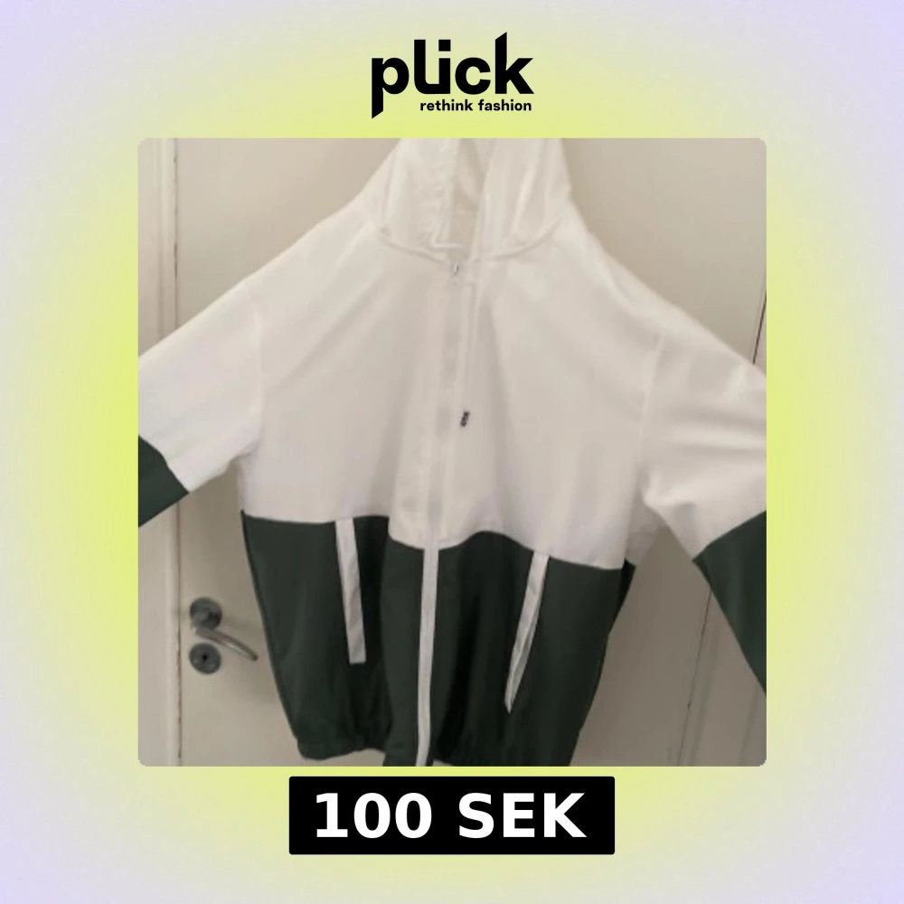 Snygg tvåfärgad vindjacka i vitt och mörkgrönt med dragkedja framtill och huva. Jackan har elastisk nederkant och två fickor framtill. Perfekt för dig som gillar en clean och sportig stil.