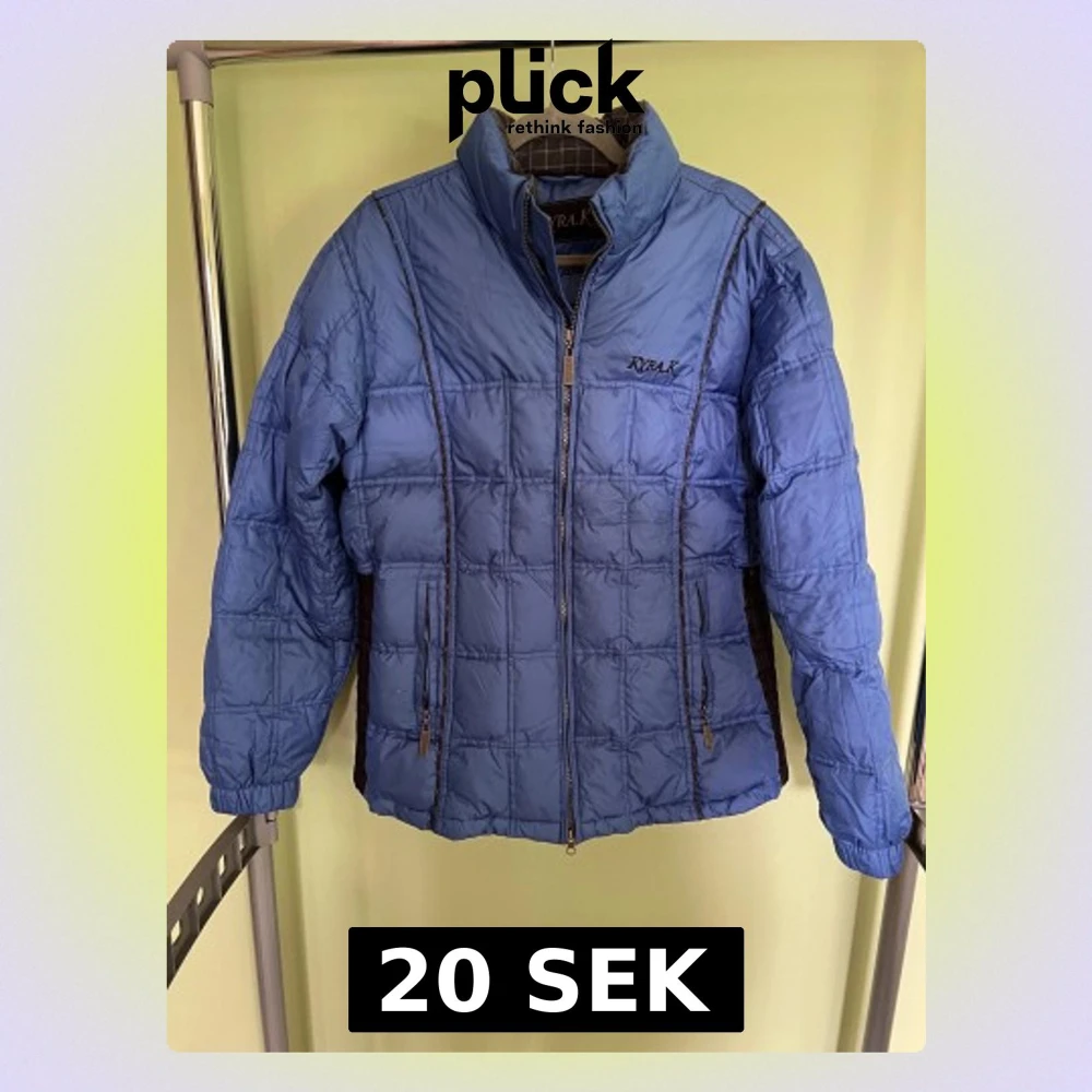 Blå pufferjacka från Kyra K med quiltad design och bruna detaljer längs sidorna. Jackan har hög krage, två fickor med dragkedja och markerade sömmar. Materialet är syntet och jackan stängs med dragkedja framtill. Perfekt för kyliga dagar.