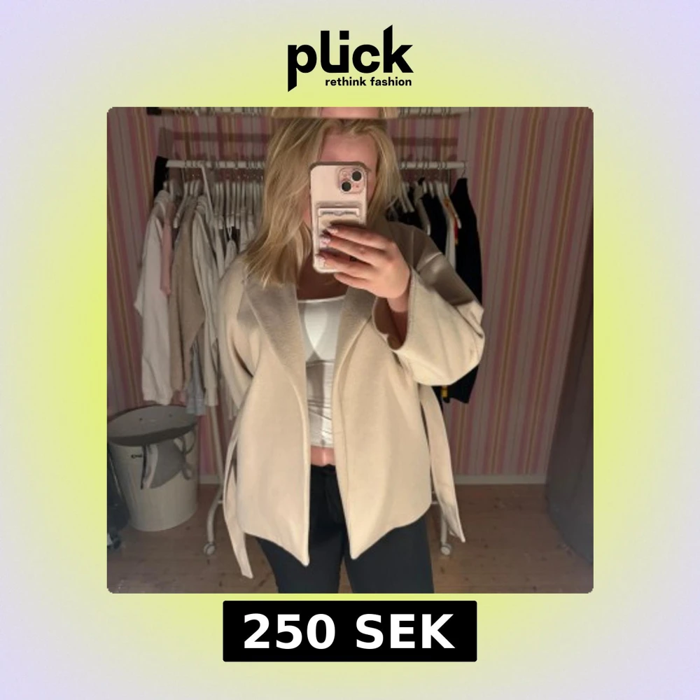 Snygg beige kappa med bälte i midjan, fickor och öppen front. Från Missäy, stl. M. Skriv vid frågor💓