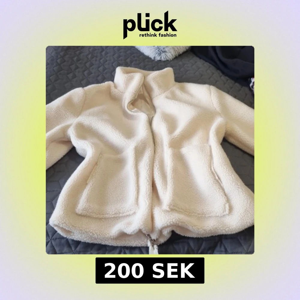 Mysig beige teddyjacka i storlek M med hög krage och två stora fickor framtill. Jackan har hel dragkedja och snörning nertill för extra passform. Perfekt för kyliga dagar när du vill vara både varm och stilren. Bara testat.