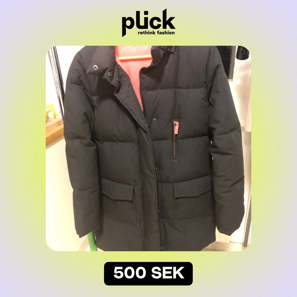 Säljer en svart dunjacka från Pure by Turnover i storlek M. Jackan är perfekt för vintern med sitt varma dunfoder. Den har en snygg design med dragkedja och knappar framtill. Insidan är fodrad med en cool orange färg som ger en fin kontrast. Perfekt för kalla dagar! 🖤🧡