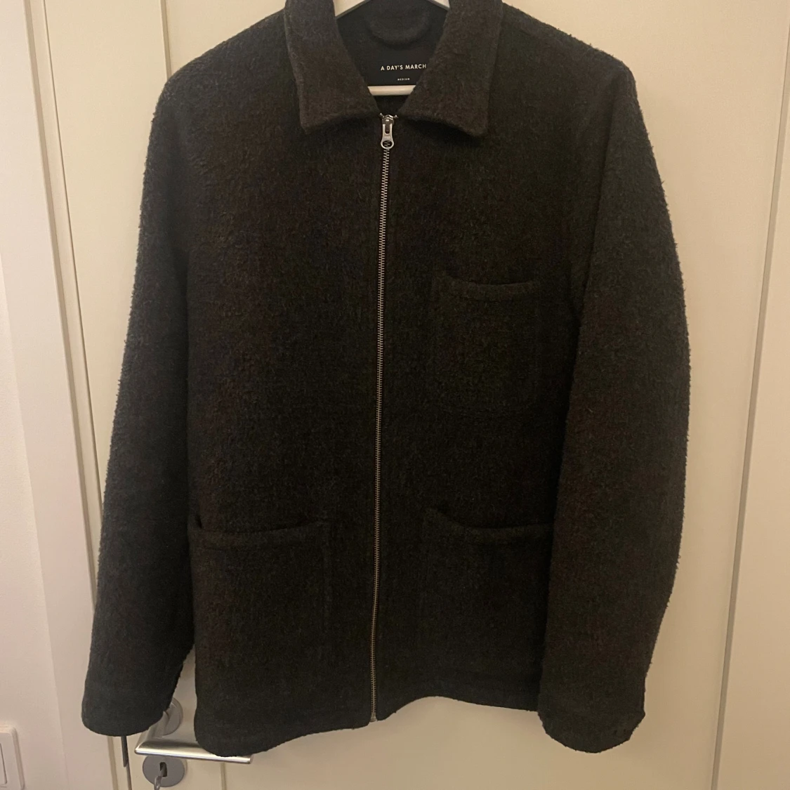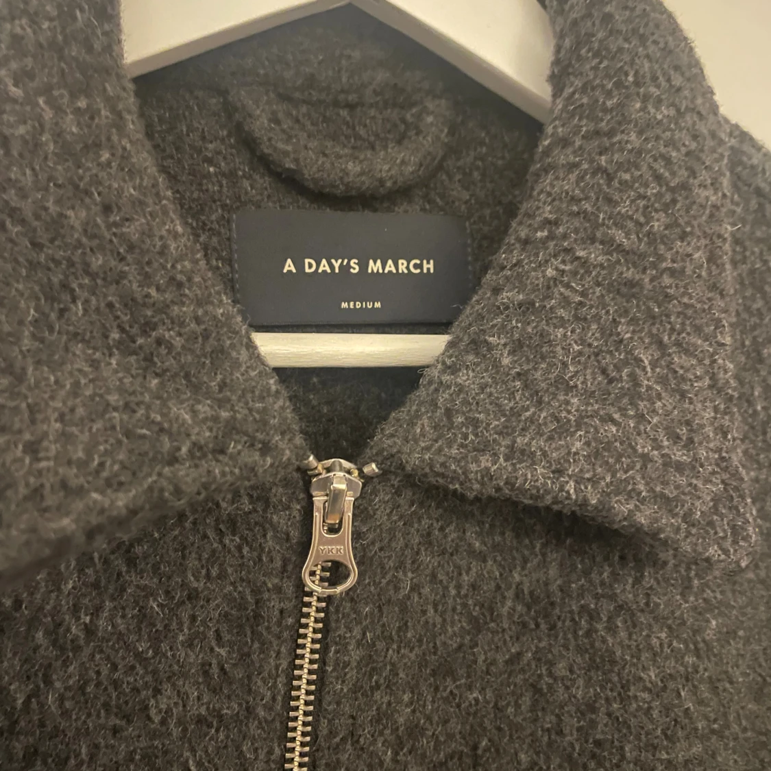 Säljer en stilren mörkgrå overshirt från A Day's March i ullmix. Jackan har rak passform, tre fickor framtill och stängs med dragkedja. Perfekt för lager-på-lager och funkar året runt. Enkel och clean design som passar till allt.