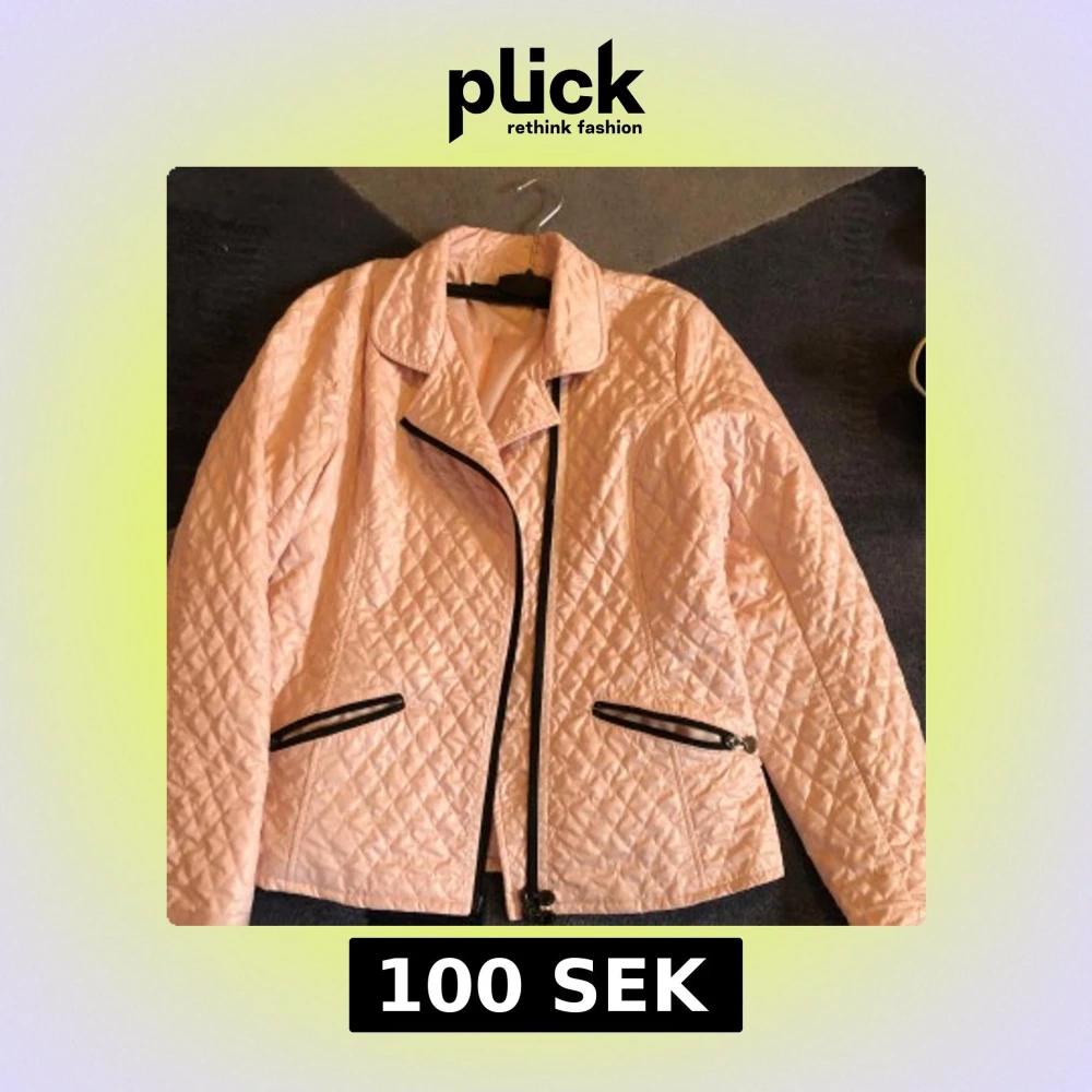 Snygg rosa quiltad jacka med svarta dragkedjor och detaljer. Jackan har en klassisk krage och två fickor framtill. Perfekt för en stilren look.