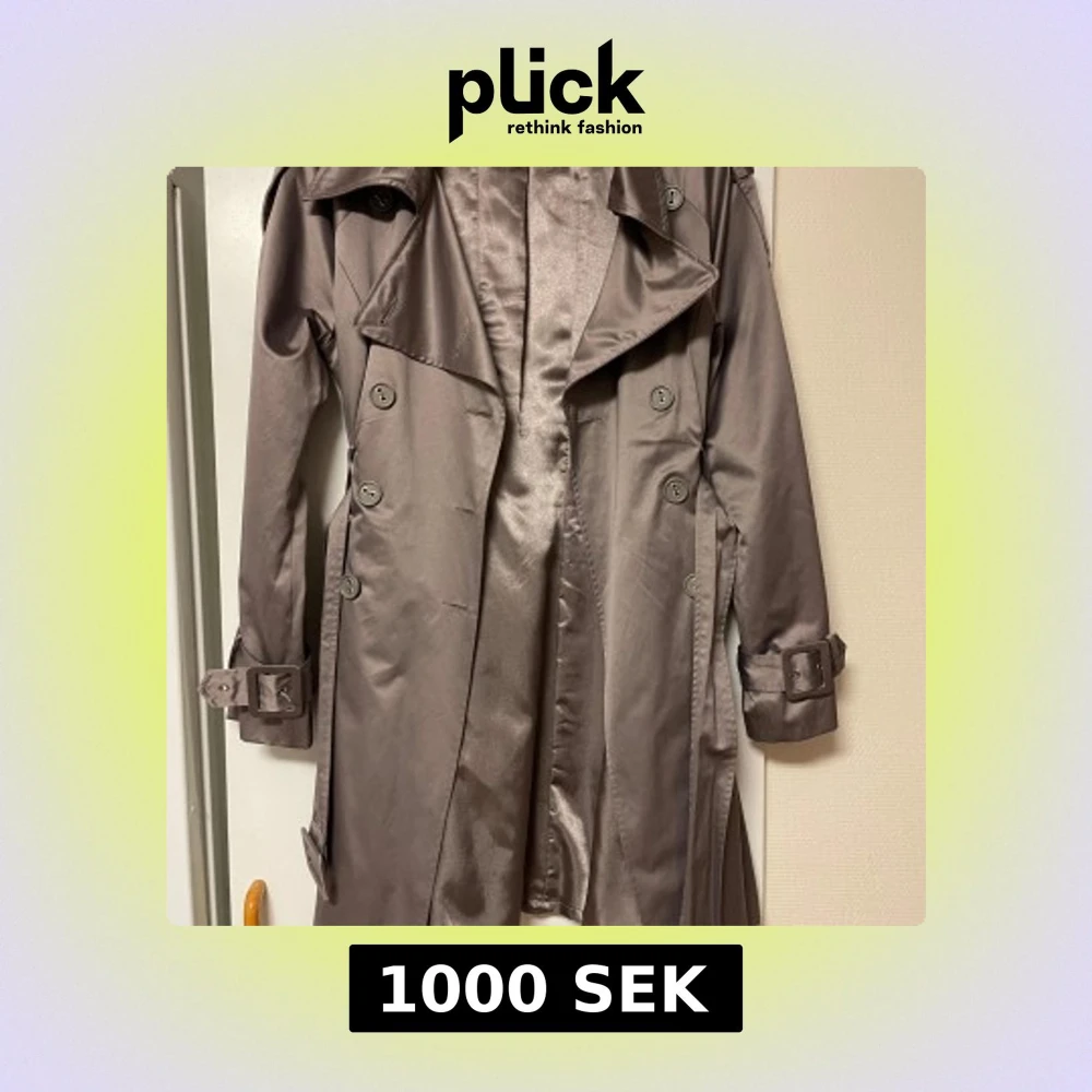 Snygg grå glansig trenchcoat från Derhy i storlek M. Använd 2 gånger tidigare. Väldigt snygg och sitter fint.
