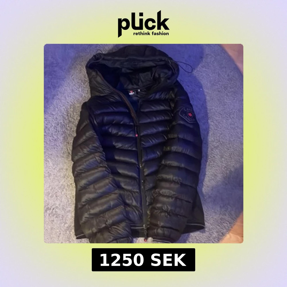 Säljer en svart pufferjacka från Zavetti Canada i storlek M. Jackan har huva, breda quiltade sektioner och en snygg logga med röd lönnlöv på ärmen. Dragkedja framtill och två sidofickor. Perfekt för kalla dagar och riktigt stilren look.