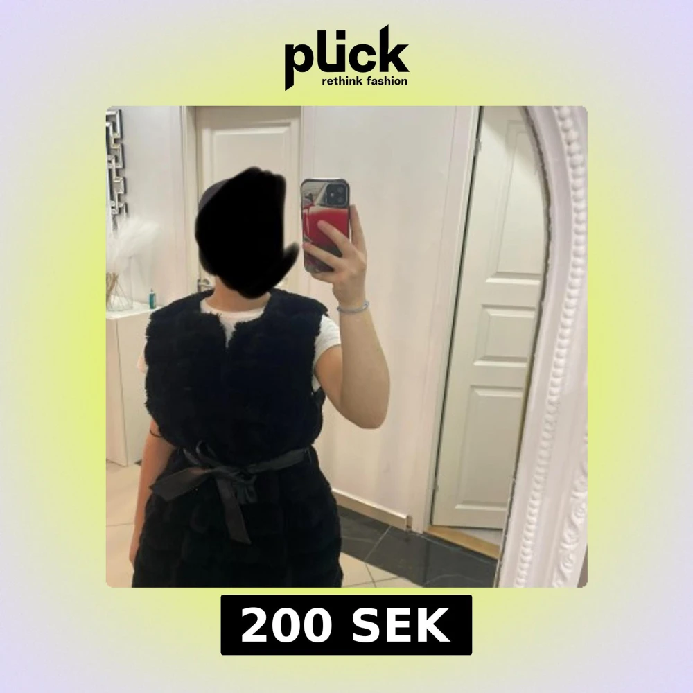 Snygg svart pälsväst med ett knytbälte i midjan. Västen har en mjuk och fluffig textur som ger en lyxig känsla. Perfekt för att hålla sig varm och stilren under kyligare dagar.