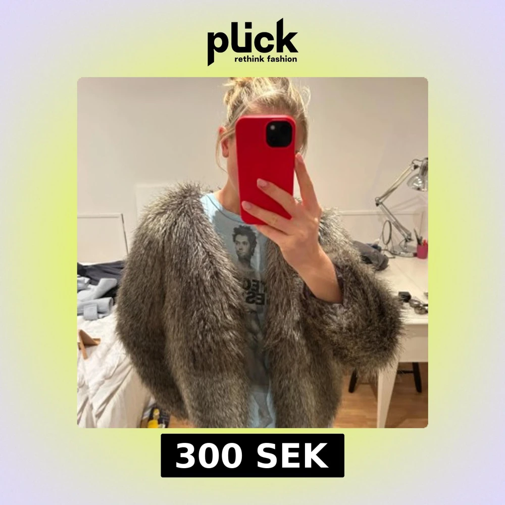Säljer en snygg grå pälsjacka med fluffig textur. Jackan har en öppen design och långa ärmar, perfekt för att hålla sig varm!!