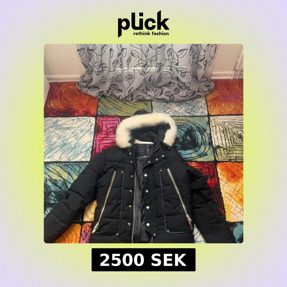 Svart pufferjacka från Horspist med vit fuskpäls runt huvan, långa ärmar och flera silvriga dragkedjor framtill. Jackan har quiltad design, tryckknappar och en snygg urban look. Perfekt för kalla dagar med sin tjocka vaddering och coola detaljer. Bara dragkedjan funkar inte.OBS KVITTO FINNS INTE