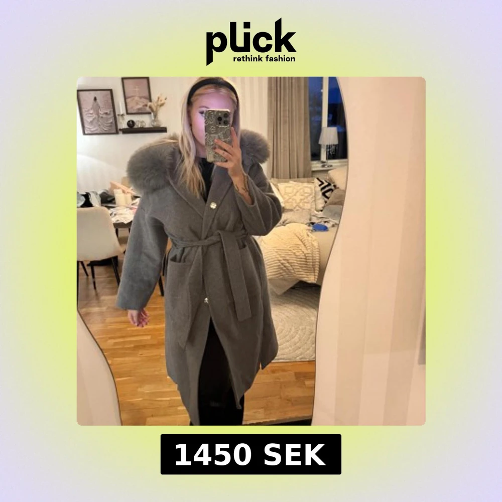 Snygg grå kappa med päls på kragen och knytbälte i midjan. Kappan har långa ärmar, knappar framtill och en klassisk, rak passform. Perfekt för kyliga dagar när du vill vara både varm och stilren. Den är i ull så är väldigt varm