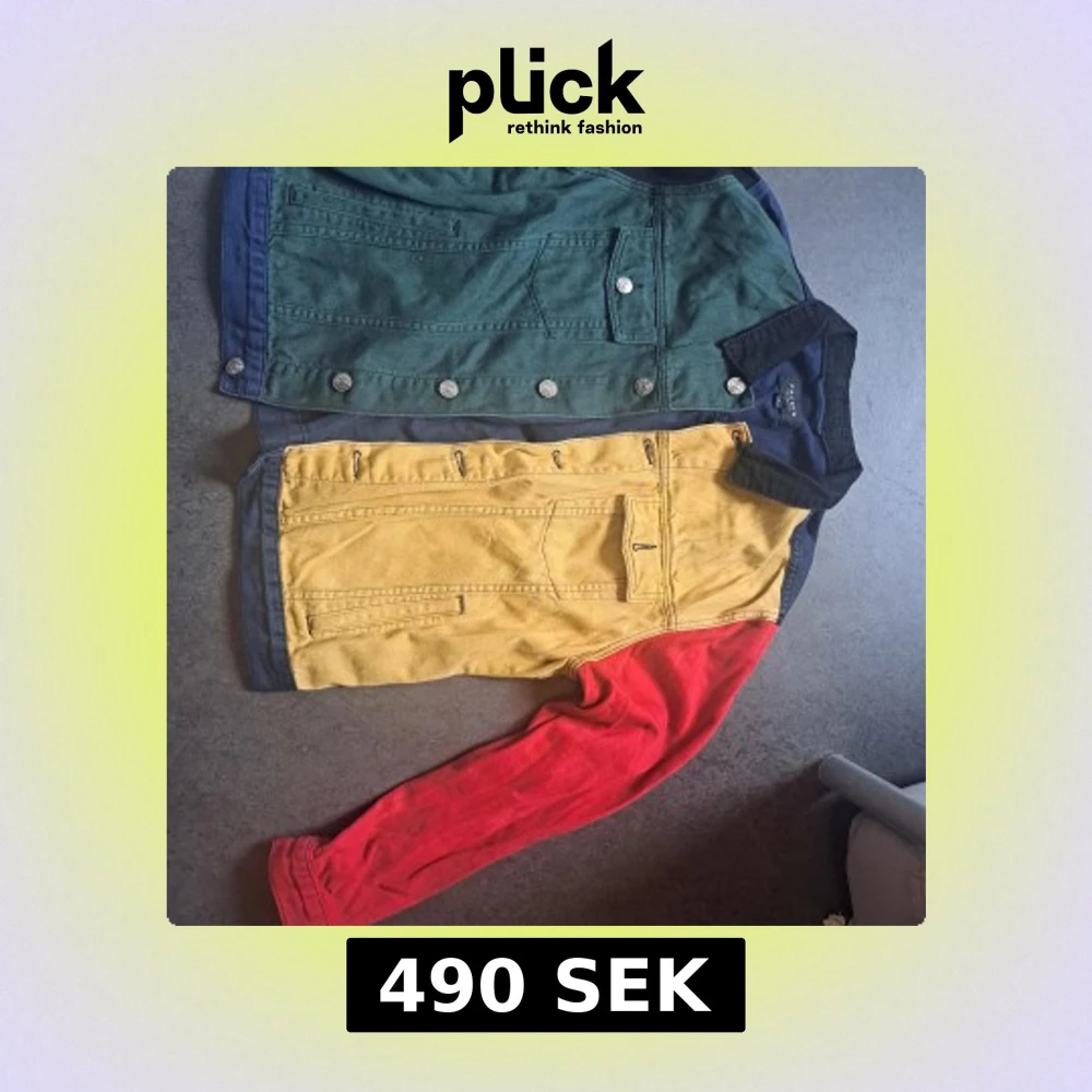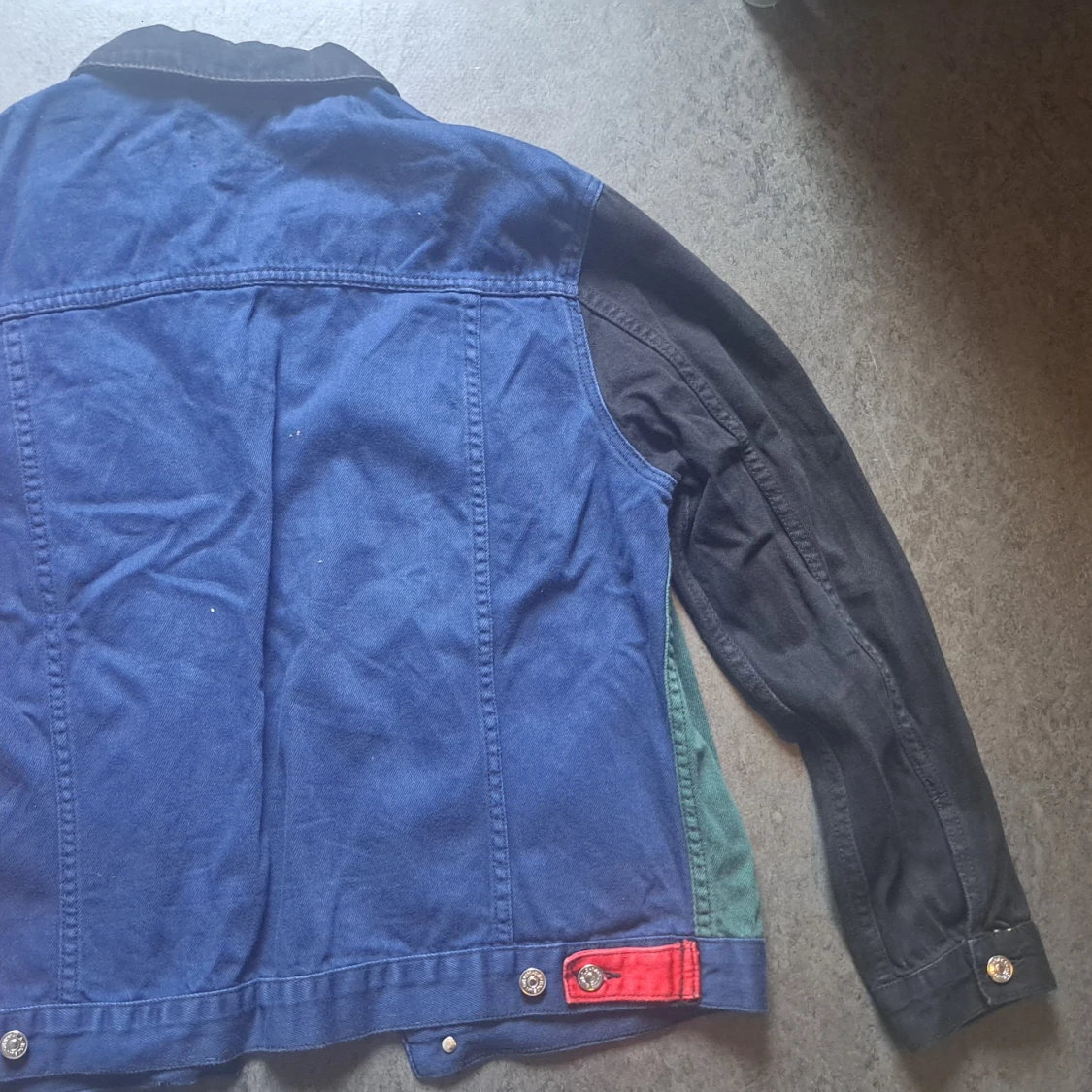 Säljer en unik jeansjacka från Pacsun i storlek M. Jackan har coola färgblock i blått, grönt, gult, rött och svart. Klassisk jeansjacke-modell med knappar framtill, bröstfickor och långärmade ärmar. Perfekt för dig som vill sticka ut med din stil.