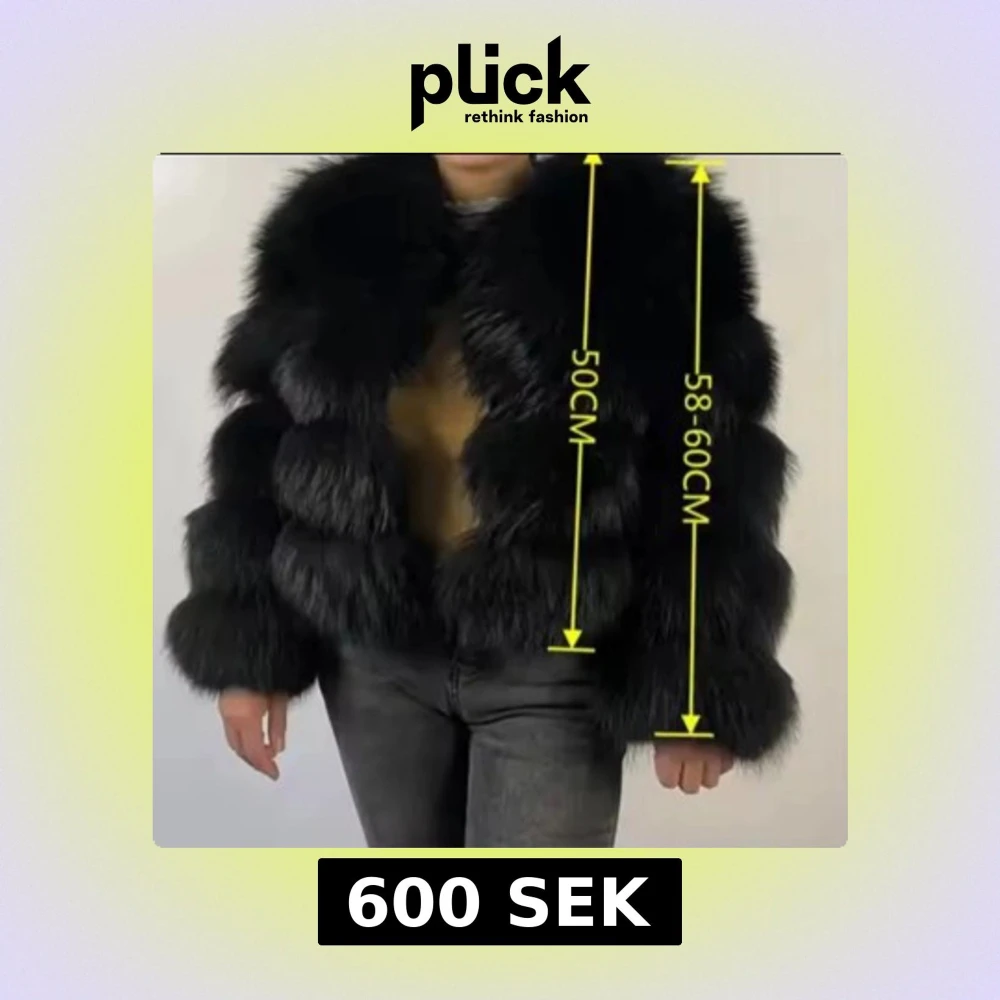 Säljer en svart, superfluffig pälsjacka med breda, markerade sektioner och långärmad design. Jackan har en riktigt lyxig och voluminös look som sticker ut och passar perfekt för dig som vill ha något extra. Längden är cirka 58-60 cm och den är riktigt mjuk och skön. Denna jacka är oanvänd köpte fel storlek därför säljer jag den, pris går även att diskutera