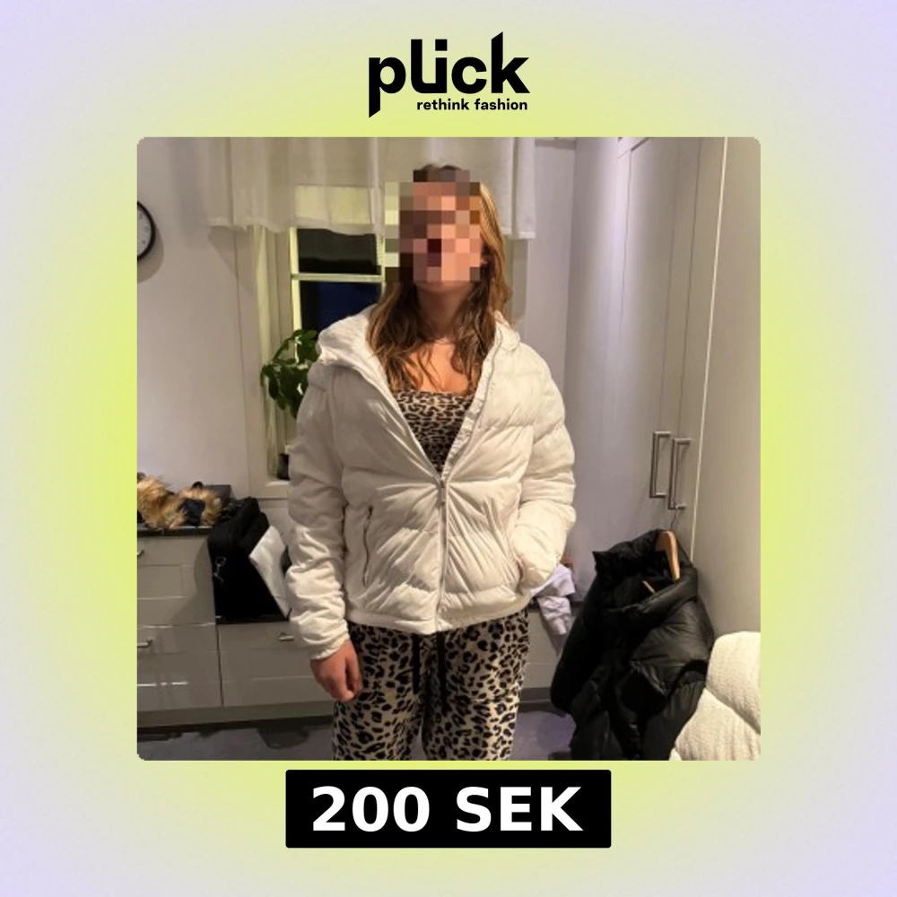 Säljer en snygg vit pufferjacka med huva och dragkedja framtill. Jackan har quiltad design och två fickor med dragkedja. Perfekt för kalla dagar när du vill hålla dig varm och ändå se fräsch ut.